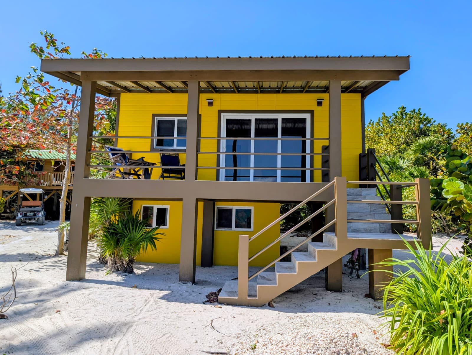 Perfectly positioned in one of the most peaceful stretches of Caye Caulker, just south of the airport on the eastern, reef-facing side of the island, the home captures the cooling trade winds and breathtaking sunrise views over the Caribbean Sea. The gentle rhythm of the waves and the soft ocean breeze create a setting that is both calming and unforgettable.
